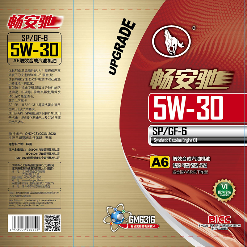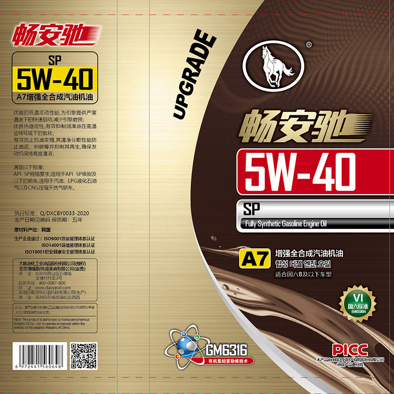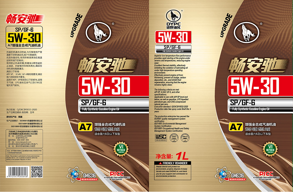 暢安馳A7-SP/GF-6-5W30增強全合成汽油機油敬請放心使用!