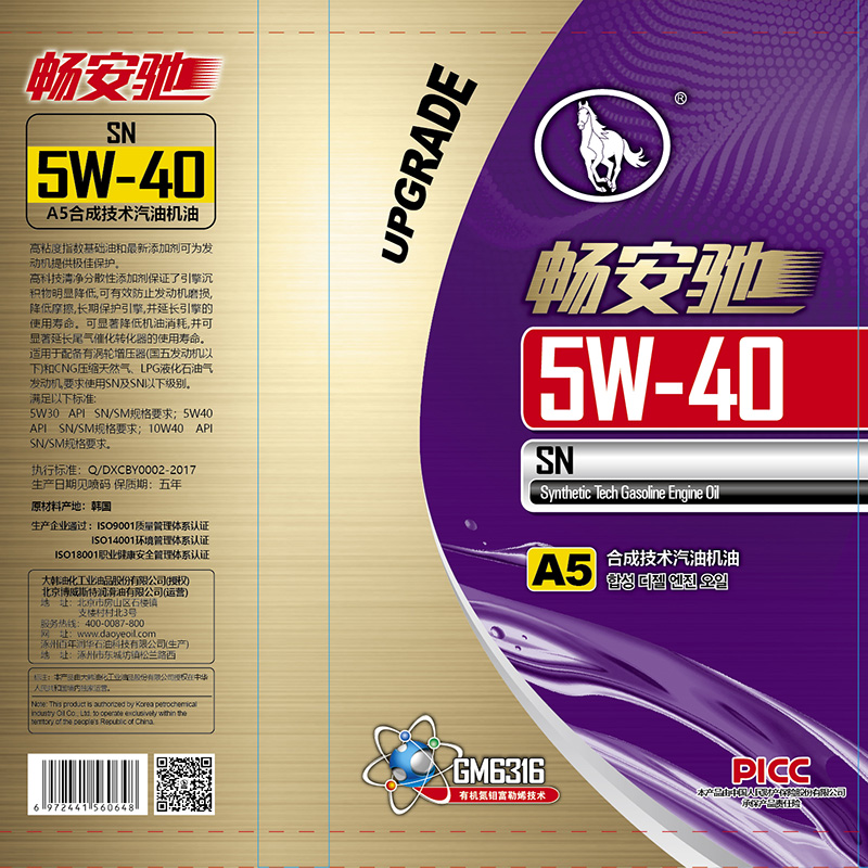 您所查詢的是4L裝暢安馳SN-5W-40-A5合成技術(shù)汽油機油敬請放心使用!