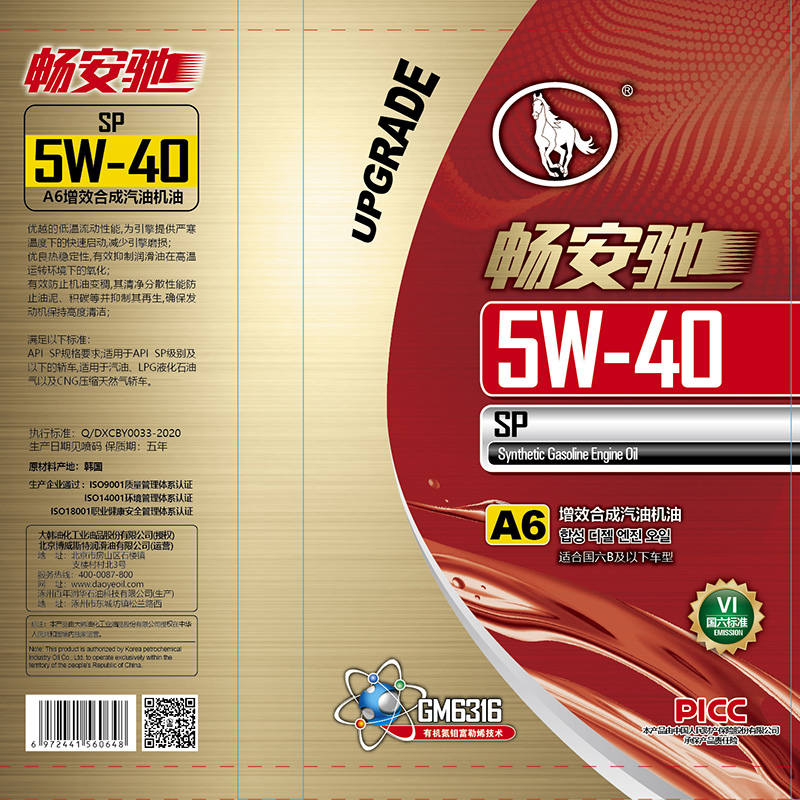 您所查詢的是4L裝暢安馳SP-5W-40-A6增效合成汽油機油敬請放心使用!